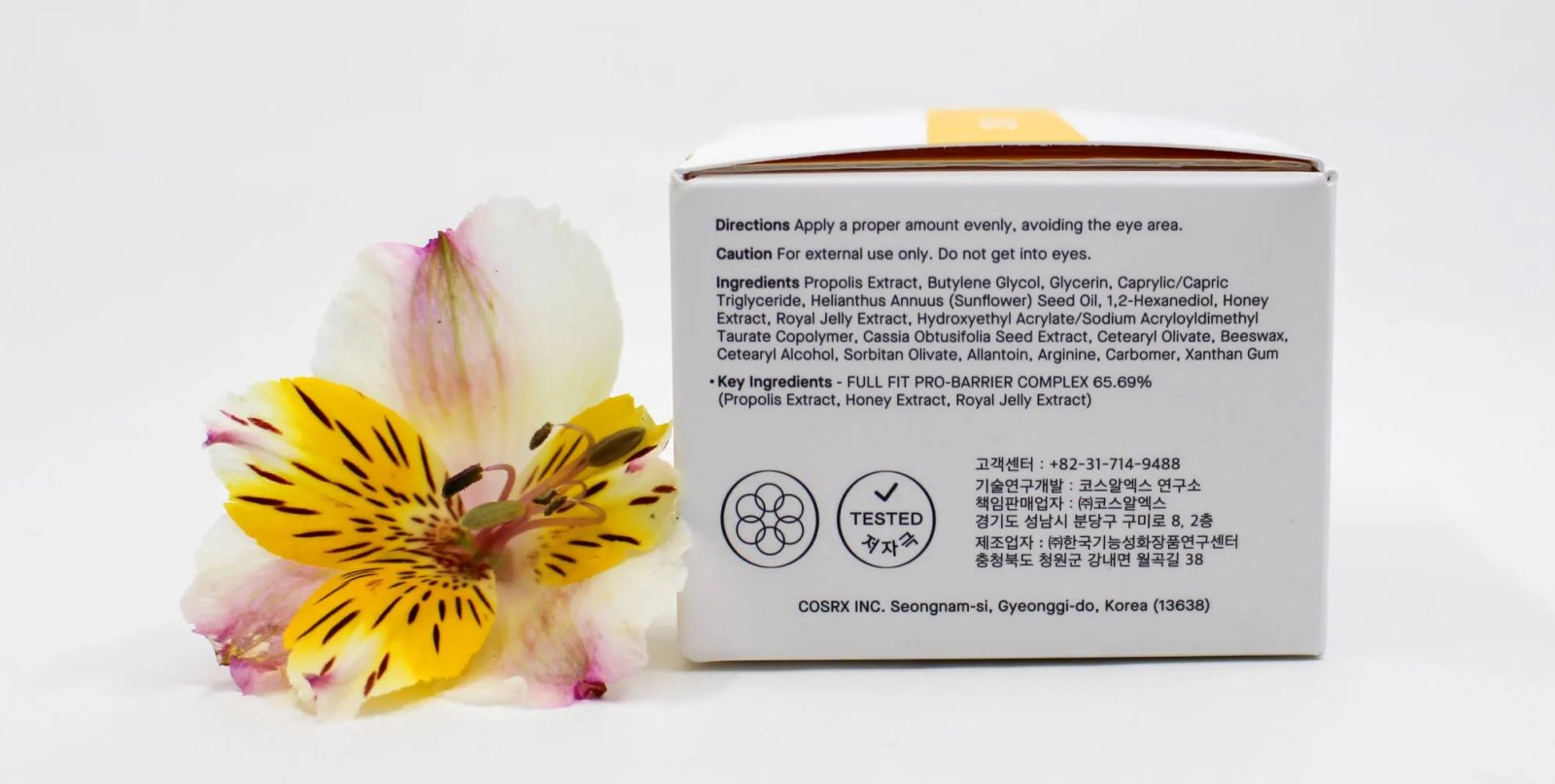 * Ingrédients principaux : Extrait de propolis, glycérine, triglycérides caprylique/caprique, huile de graines de tournesol, extrait de miel, gelée royale, allantoïne, arginine et extraits végétaux nourrissants.